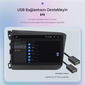 Otolas 2012-2015 Honda Civic Multimedya Ekran|9 Inç 8GB+128GB Multimedya Navigasyon Wifi Carplay+Kamera