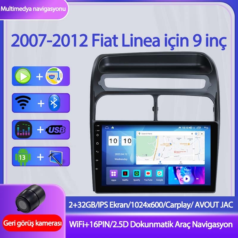 9 Inç ekran 2 GB + 32 GB | Kameralı | Carplay | Android Auto | Navigasyon | Geri Görü Kamerası | Multimedya Sistem