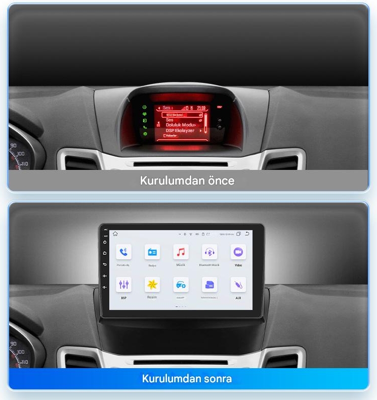 Otolas Ford Fiesta 2009-2017 Yıl Uyumlu 9 Inç 8 GB Ram 128 GB Hafıza Multimedya Carplay Navigasyon Kamera Wifi Gps