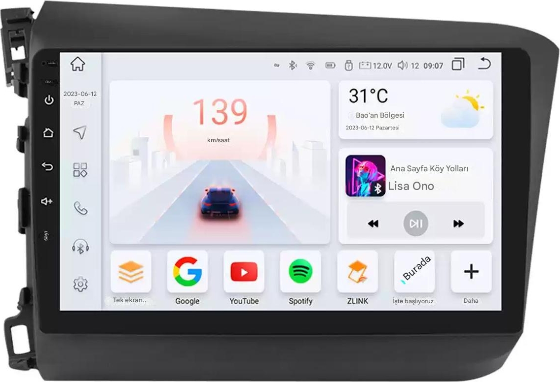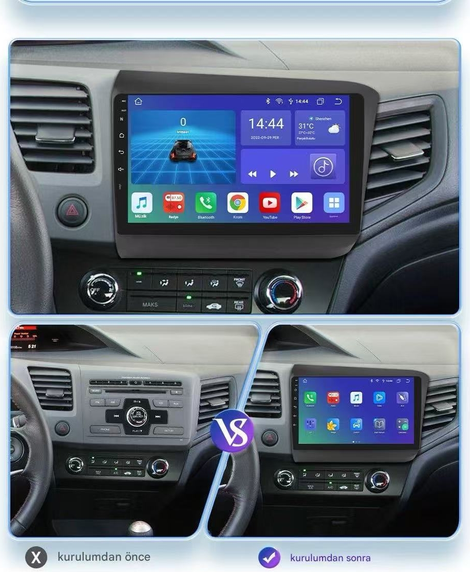 Otolas Honda Civic Wifi Gps Carplay 9 Inç 4+32GB Kamera Multimedya Navigasyon Sistemi – 2012-2015 Model