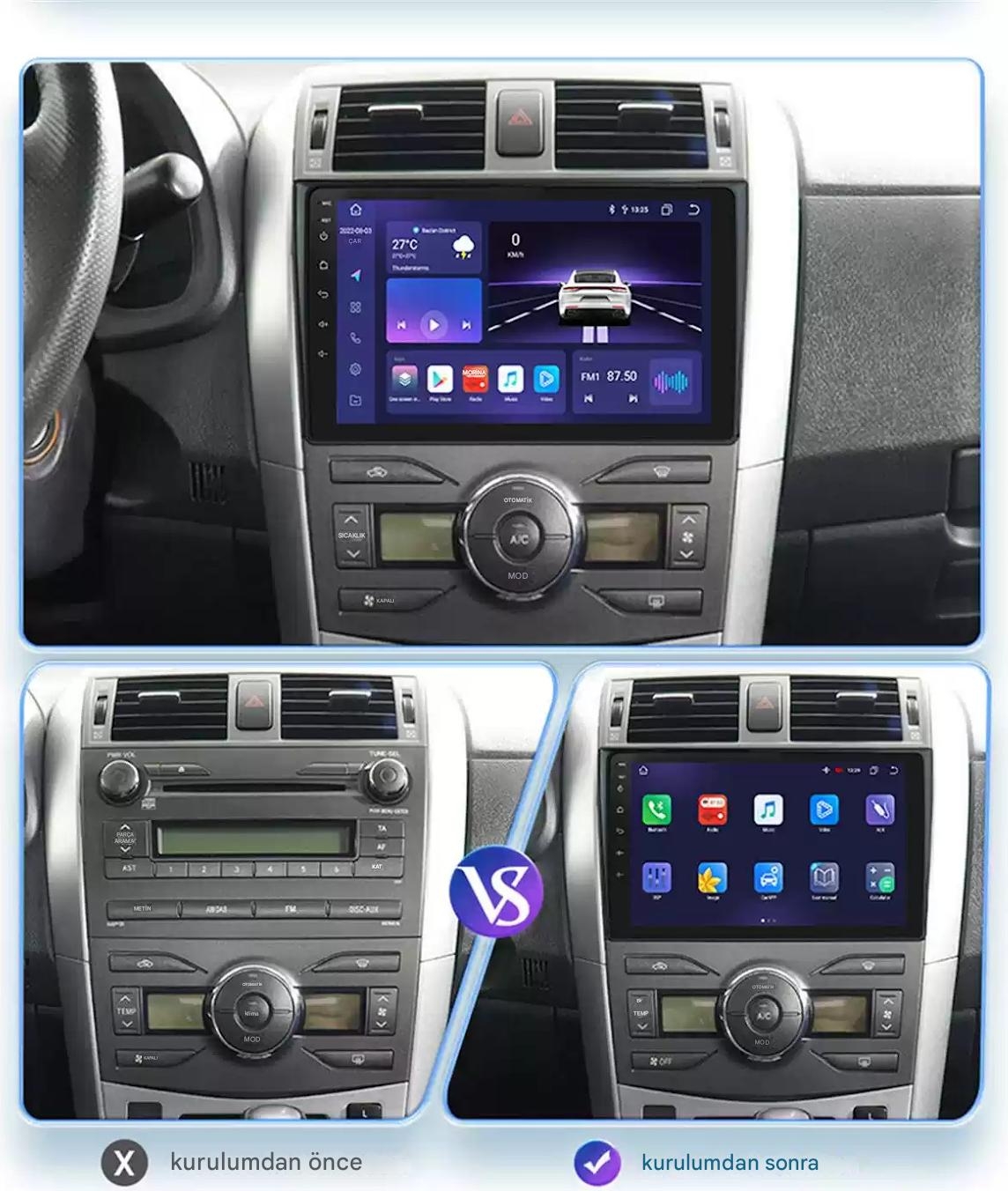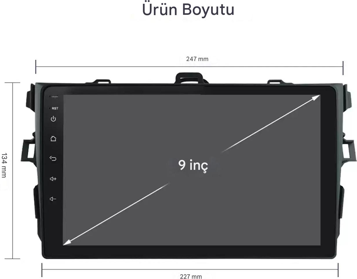 9 Inç ekran 2 GB + 32 GB | Kameralı | Carplay | Android Auto | Navigasyon | Geri Görü Kamerası | Multimedya Sistem